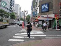 歩道橋を下り、大通り(八ツ山通り:通称・ソニー通り)に沿って歩道を直進し、一本目の通りを渡って進みます。