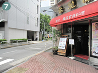 三菱東京UFJ銀行のATMを通り過ぎ、焼肉・韓国料理店「香龍園」の角を右に曲がります。