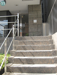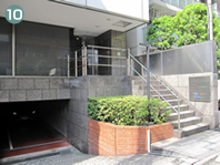 右側のポーチの階段を上るとエントランスです。中に入ると奥の右側にエレベータがあります。3階が日本ホリスティックアカデミーの教室です。